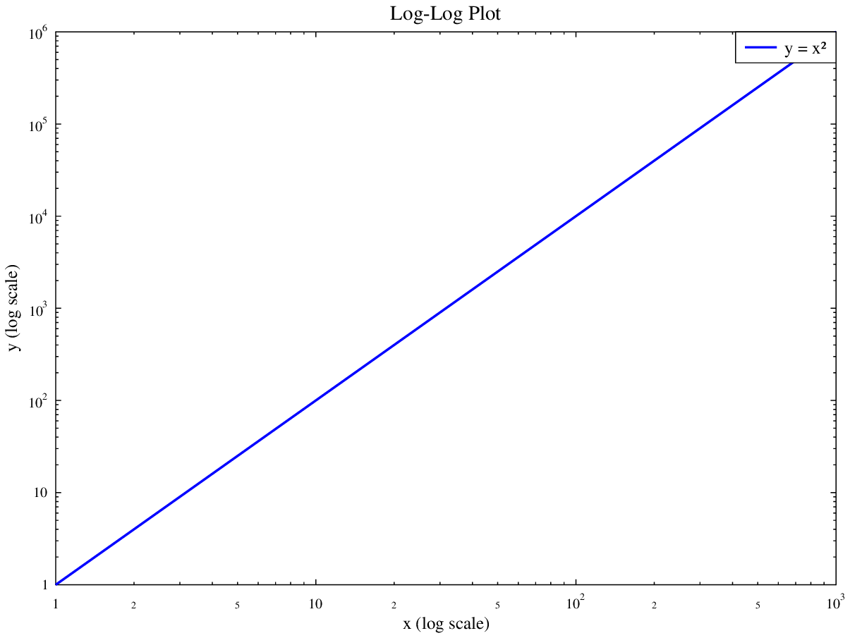 Log-log plot demonstrating a power-law relationship.