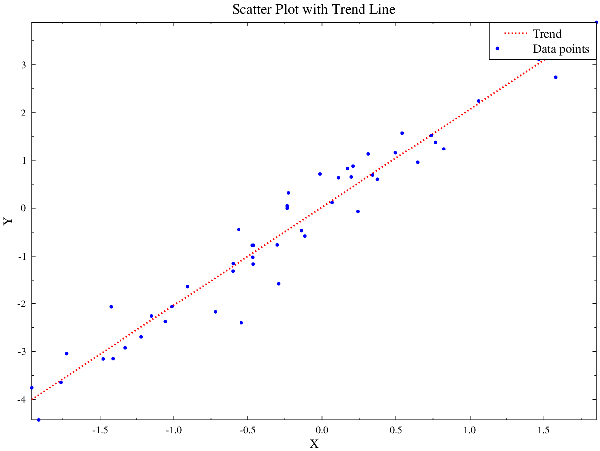Scatter plot with a linear trend line fitted to random data.